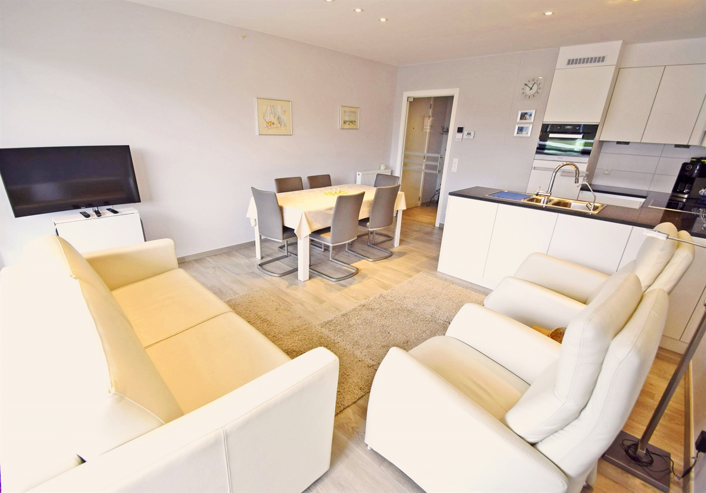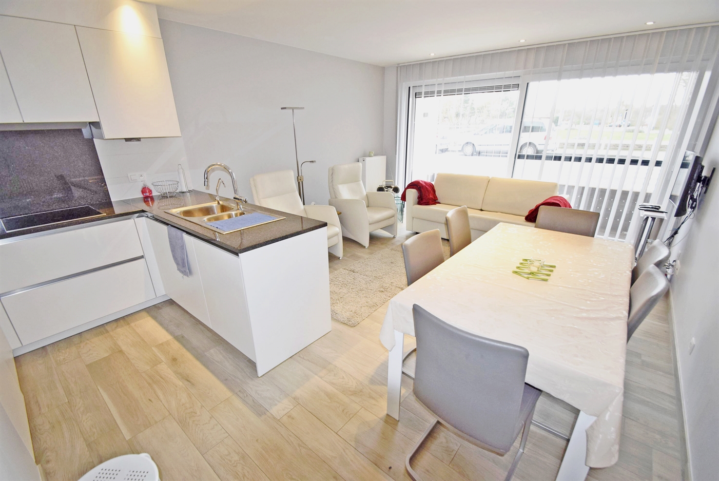 Appartement tout neuf avec aménagement de haute gamme situé dans la nouvelle résidenceNautica, à quelques pas des dunes et de la plage. Living avec un divan-lit de deux pers, coincuisine équipée de lave-vaisselle et de four combiné, hall, buanderie avec machine avec lave-linge,toilettes, salle de bains avec douche, 1 chambre avec 1 lit double et 1 chambre avec deslits superposés (3 pers.), terrasse ensoleillée, ascenseur, accès Internet, rez-de-chaussée + garage